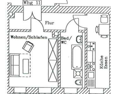 Das Wohn- und Schlafzimmer ist großzügig geschnitten und bietet durch seine klare Form vielfältige Einrichtungsmöglichkeiten. Ob gemütliche Wohnlandschaft, Arbeitsplatz, Schlafbereich oder kreativer Mix – der Raum lässt sich wunderbar aufteilen. Die großen Fenster sorgen für unglaubliche Helligkeit und öffnen den Blick ins Grüne. Ein echter Connewitzer Vorteil: lebendige Szenelage – und trotzdem dieses friedliche, sanfte Grün direkt vor der Tür. Die Wohnung selbst liegt angenehm ruhig im Haus, umgeben von einer freundlichen, entspannten Nachbarschaft.