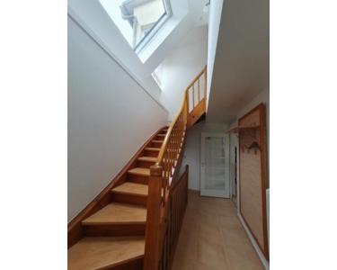 Die Hauptwohnung wird durch den eigenen Zugang erreicht und erstreckt sich über zwei Etagen vom 1. Obergeschoß ins Dachgeschoß.