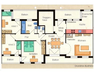 - Schlafzimmer und Kinderzimmer mit gemeinsamem Balkon