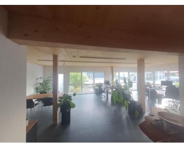 Das im Jahr 2014 in hochwertiger Holzständerbauweise errichtete Gebäude bietet eine Gesamtfläche von 695 m², zzgl. 75 qm Galeriefläche und 30qm Balkon.