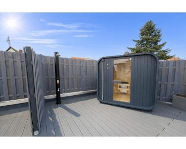 Ein besonderes Augenmerk lag auf der Neugestaltung der Außenbereiche: Die großzügige Dachterrasse wurde zu einem hochwertigen Wellness- und Freizeitbereich ausgebaut. Hier befinden sich eine Sauna, eine stilvolle Außendusche sowie eine voll ausgestattete Outdoor-Küche, die sowohl für entspannte Stunden als auch für gesellige Abende ideal geeignet ist. Ergänzt wird dies durch eine zweite, geschützte Terrasse, die zusätzlichen Platz für Aufenthalt im Freien bietet.