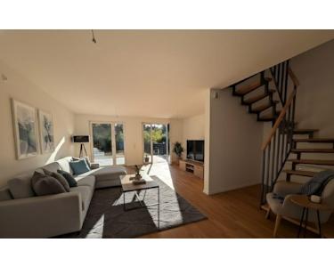 Die Architektur kombiniert klare Linien, hochwertige Materialien und eine durchdachte Raumaufteilung. Die Doppelhaushälfte bietet viel Platz für Familien, Paare oder alle, die großzügig und modern leben möchten.