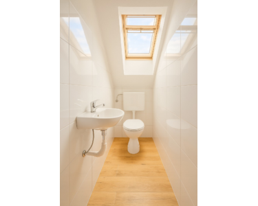 Das Bad ist im gepflegten Zustand, funktional und sauber – mit Tageslicht, Dusche und separater Toilette. Es vermittelt den soliden Charme eines liebevoll erhaltenen Bestandshauses.