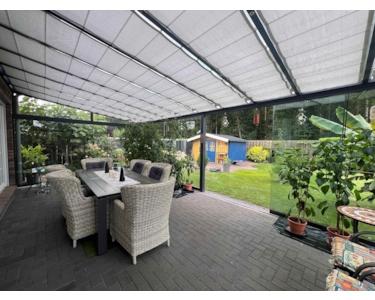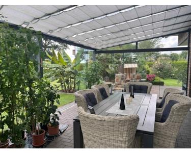 Überdachter Sommergarten – eine einladende Erweiterung des Wohnraums, die sich wetterunabhängig nutzen lässt. Hier können Sie geschützt vor Wind und Regen frühstücken, Feste feiern oder einfach bei einem Glas Wein den Sonnenuntergang genießen.