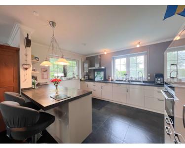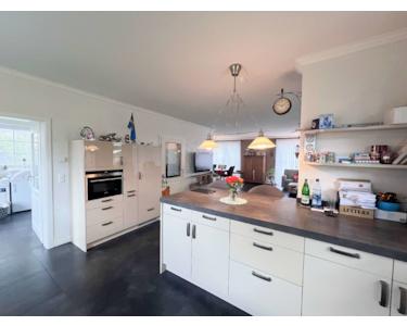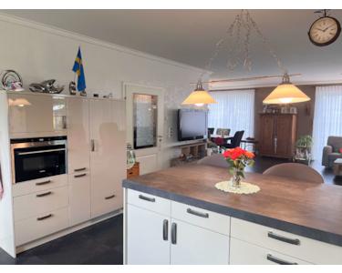 Auf rund 170 m² Wohnfläche präsentiert sich dieses Haus mit einer gehobenen Ausstattung, die keine Wünsche offenlässt. Herzstück ist der großzügige, lichtdurchflutete Wohnbereich, in dem die moderne Einbauküche mit hochwertigen Elektrogeräten offen in den Wohnraum übergeht. Hier trifft zeitloses Design auf Funktionalität – perfekt für gemeinsames Kochen und Genießen.