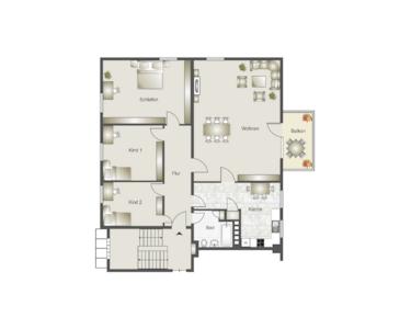 Diese wunderbar geräumige Wohnung befindet sich im 3.OG und besteht aus 3 Schlafzimmern, einem sehr großem Wohn-/Essbereich mit Balkon, einer Küche mit neuwertiger Einbauküche sowie einem großen Badezimmer mit Wanne, Dusche, WC und Bidet. Vom geräumigen Wohnzimmer hat man direkten Zugang zum Balkon mit schönem Blick ins Grüne. Hier lässt es sich in den Sommermonaten geschützt und entspannd sitzen und den Alltagsstress vergessen.