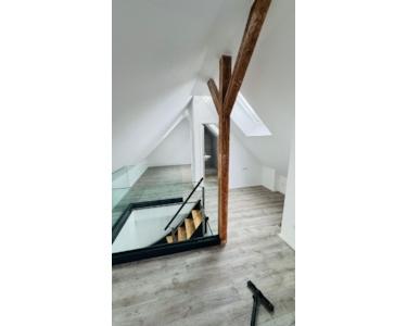 Zur Vermietung steht eine außergewöhnliche 3,5-Zimmer-Maisonettewohnung mit ca. 134,54 m² Wohnfläche, die nach umfassender Sanierung erstmals bezogen wird. Das Gebäude stammt ursprünglich aus dem Baujahr 1960, die Wohnung selbst präsentiert sich jedoch technisch und optisch auf Neubauniveau.