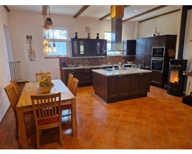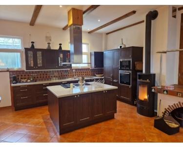 Balkon, Terrasse, Wintergarten, Garten, Keller, Duschbad, Einbauküche, Gäste-WC, Kamin, Laminat, Fliesen