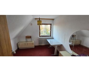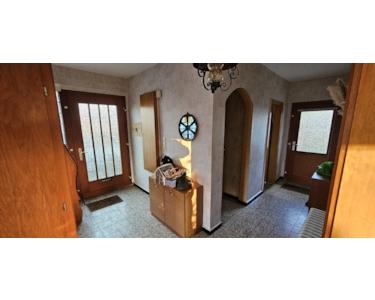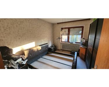 Das im Jahr 1971 in massiver Bauweise errichtete Einfamilienhaus befindet sich in einem gu-ten Erhaltungszustand. An der Nordostseite ist ein Nebengebäude mit Garage und Werkstatt errichtet worden. Des Weiteren befindet sich auf dem rückwärtigen Grundstück ein Hühner-stall, eine Vogelvoliere und ein Geräteschuppem. Das Haus hat einen hinteren Ausgang mit Zugang zur Terrasse. Das Bad im Stil der Bauzeit verfügt über Waschtischanlage, Wanne und WC. Ein Gäste-WC ist im EG vorhanden. Die Beheizung und Warmwasserversorgung erfolgen über eine zentrale Ölheizung Baujahr 2008 mit 3x1500 Liter Kunststoff-Tanks. Die Fenster und Türen sind aus Holz mit Isolierverglasung, im 1.OG noch mit Einfachverglasung.