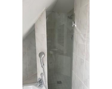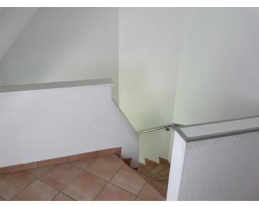 Die schöne , großzügige und helle Dachgeschosswohnung liegt im 1. OG eines Zweifamilienhauses in einer ruhigen Nebenstraße. Im Erdgeschoss des Hauses befindet sich eine weitere kleinere Mietwohnung, welche bereits vermietet ist. Ein ebenfalls im Erdgeschoss befindlicher ehemaliger Schwimmbadbereich wird von dem Vermieter lediglich als Lagerfläche genutzt. Zusammen mit der Wohnung wird ein großzügiger Raum im Keller zum Abstellen und Lagern von Gegenständen vermietet. Der Kellerraum verfügt sogar über ein Fenster, sodass ihn Tageslicht erreicht. Des Weiteren befindet sich im Keller ein Gemeinschaftsraum mit Anschlüssen für Waschmaschine und Trockner für die Mietwohnung.