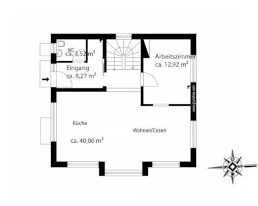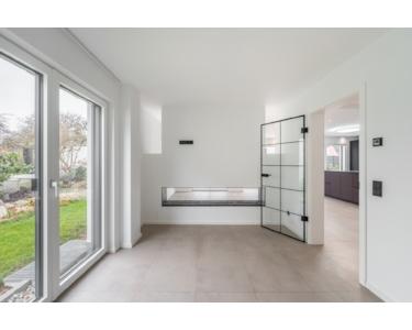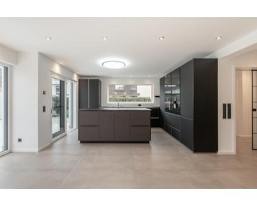 Über vier Ebenen verbindet das Haus stilvolles Wohnen mit moderner Technik. Im Erdgeschoss bildet die exklusive Nolte-Küche das Zentrum. Hochwertige Geräte von Miele, Gaggenau und Bora verbinden erstklassige Technik mit edlem Design. Der großzügige Wohnbereich mit modernem Wasserdampfkamin schafft eine einladende Atmosphäre, während ein separates Esszimmer den Grundriss harmonisch ergänzt. Dreifach verglaste Fenster, RESA-Raffstores und -Rollos unterstreichen den hohen Ausstattungsstandard.