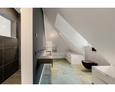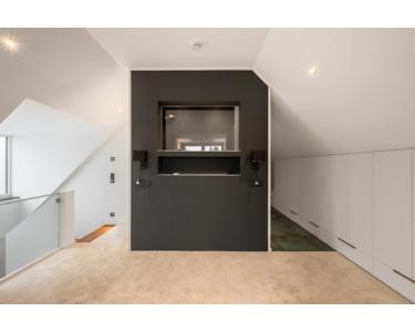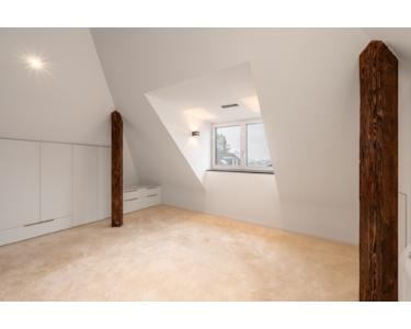 Im Dachgeschoss erwartet Sie eine private Masteretage mit großzügigem Schlafzimmer und offenem Badezimmer. Ein Wäscheabwurfschacht bis ins Kellergeschoss sorgt für zusätzlichen Komfort.
