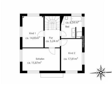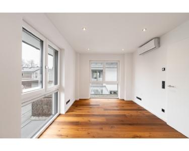 Das 1. Obergeschoss verfügt über drei gut geschnittene Schlafzimmer und ein modernes Badezimmer mit Badewanne. Klimaanlagen in allen Räumen des Ober- und Dachgeschosses, strukturierte Netzwerkverkabelung mit LAN-Dosen und doppelte WLAN-Zugangspunkte gewährleisten perfekte Bedingungen für Homeoffice und digitales Arbeiten.