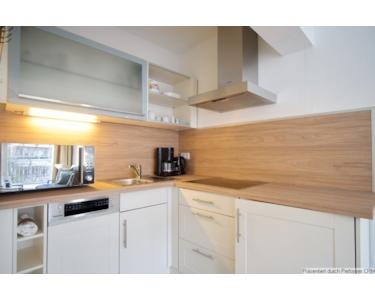 Sehr ansprechende und hochwertige Einrichtung, komplettes Inventar. Internetzugang (WLAN) über Router im Haus - der Verstärker findet sich in der selben Etage. Waschmaschine und Trockner (Münzgeräte für 50 Cent Münzen) befinden sich zur gemeinsamen Nutzung im Waschkeller. Die Einbauküche ist mit einer Spülmaschine, vier Herdplatten mit Dunstabzugshaube, Mikrowelle und Kühlschrank ausgestattet. Der Balkon ist in Süd-West-Lage zum Garten gelegen, der Wohnbereich hat bodentiefe Fenster.