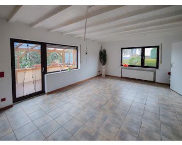 So wäre z.B. eine barrierefreie Wohnung im Souterrain denkbar, die über 2 Zimmer Küche und Bad verfügt. Weitere Kellerräume könnten der Wohnung zugeordnet werden. Alternativ kann der Wohnbereich im UG auch der Wohnung im EG zugeordnet werden, da es eine zentrale Innentreppe gibt.Im Erdgeschoss befindet sich der Hauptwohnbereich mit seinen 3 Zimmern, Küche und Bad. Vom Wohnzimmer aus gelangt man auf eine große überdachte Terrasse, die an der Rückseite des Hauses errichtet wurde. Straßenseitig befindet sich ein großer Balkon mit mehren Zugängen und herrlichem Ausblick in die Umgebung. Auf dem Grundstück wurde noch eine Gartenhütte platziert, die als Abstell- oder Partyhütte dienen könnte.