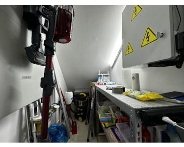 Ergänzend steht ein separater, technisch ausgestatteter Batteriespeicherraum mit mehreren modularen Lithium-Ionen-Speichern (UN 3480) zur Verfügung. Dieser ermöglicht die effiziente Zwischenspeicherung des erzeugten Solarstroms, eine Erhöhung der Eigenverbrauchsquote sowie eine gezielte Lastspitzenkappung; systemabhängig ist zudem eine Not- bzw. Ersatzstromversorgung realisierbar.