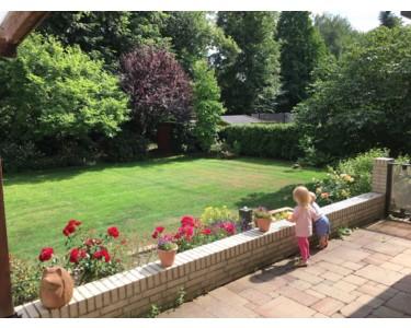 Der großzügige, pflegeleicht angelegte Garten bietet viel Raum zum Spielen, Entspannen und Gestalten. Eine teilweise überdachte Terrasse sowie ein Balkon erweitern den Wohnraum nach außen und ermöglichen zu jeder Jahreszeit angenehme Aufenthalte im Freien.