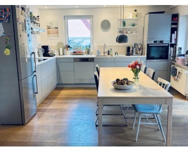 Das Haus verfügt über insgesamt sechs Zimmer, die flexibel als Schlaf-, Kinder-, Arbeits- oder Gästezimmer genutzt werden können. Herzstück des Hauses ist die moderne Wohnküche, die mit ihrem offenen Charakter und einem neuen Kamin eine einladende Atmosphäre für gemeinsames Kochen, Essen und Beisammensein schafft.