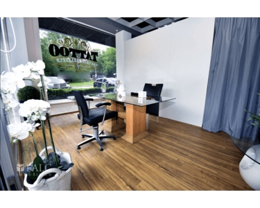 Der großzügige Eckladen umfasst ca. 35 m² und besticht durch seine modernen, komplett verglasten Wände. Diese sorgen für viel Tageslicht und eine offene, freundliche Atmosphäre. Die hochwertige Einrichtung beinhaltet elegante Regal- und Raumtrennungen, die für eine professionelle und ansprechende Präsentation der Behandlungen und Produkte sorgen. Die flexible Raumgestaltung ermöglicht individuelle Nutzung und Anpassung an Ihre Bedürfnisse.