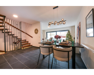 Treten Sie ein in Ihr neues, komfortables und geräumiges Heim! Das Haus öffnet sich mit einem einladenden Flur, der Sie direkt zum Gäste-WC und einer Garderobenecke führt. Die großzügige Küche bietet genug Platz, um Ihre kulinarischen Fähigkeiten zu entfalten. Der Wohn- und Essbereich mit direktem Zugang zur Terrasse lädt zu geselligen Abenden mit der Familie oder Freunden ein.