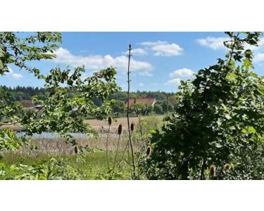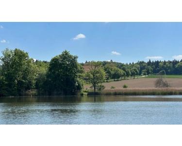 Wiesen, Felder, der Nahe Badeweiher mit idyllischen Badeplätzen bieten das malerische Umfeld dieses Anwesens.