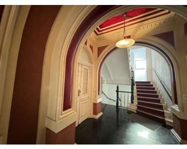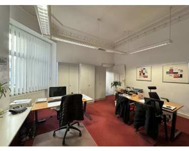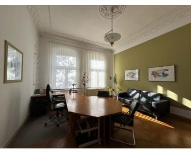 Die Räumlichkeiten verteilen sich auf drei gut geschnittene Büros mit homogenen Größen, einen großzügigen Empfangs- und Wartebereich, ein separates Archiv sowie ein WC. Zwei der Büros sind mit hochwertigem Parkettboden ausgestattet. Hohe Decken mit historischen Stuckelementen und große Fensterflächen sorgen für viel Tageslicht und eine angenehme Arbeitsatmosphäre.