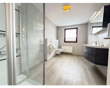 Im Erdgeschoss stehen Ihnen zwei gut geschnittene Schlafzimmer zur Verfügung – ideal als Elternschlafzimmer, Gäste- oder Arbeitszimmer. Das vollständig renovierte Badezimmer überzeugt mit einer ebenerdigen Dusche, modernen Badmöbeln und zeitloser Gestaltung. Ebenfalls im Zuge dieser Renovierung wurden die Innentüren im Erdgeschoss erneuert und in einem modernen Weiß gehalten.