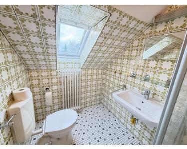 Das Dachgeschoss bietet zusätzliches Potenzial: Hier befinden sich zwei weitere Schlafzimmer sowie ein Duschbad im authentischen Vintage-Stil der 1970er-Jahre. Zudem ist die Einrichtung einer Einliegerwohnung problemlos denkbar – ideal für Gäste, erwachsene Kinder oder zur Kombination von Wohnen und Arbeiten.
