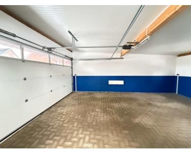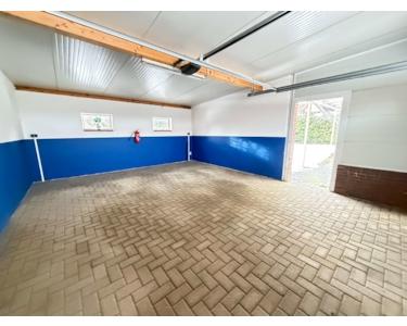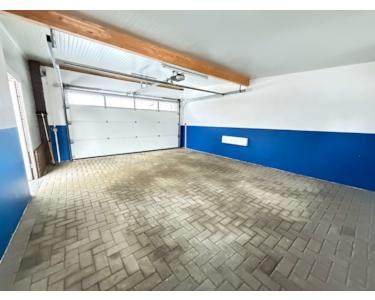 Eine große Garage aus dem Jahr 1985 mit elektrischem Sektionaltor bietet ausreichend Platz für Ihr Fahrzeug sowie zusätzlichen Stauraum.