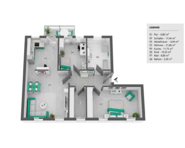Das große Tageslichtbad ist mit einer ebenerdigen Dusche, einer großen Badewanne und einen Waschmaschinenanschluss ausgestattet. Die Fußbodenheizung sowie ein praktischer Abstellraum innerhalb der Wohnung ergänzt das Angebot ideal.