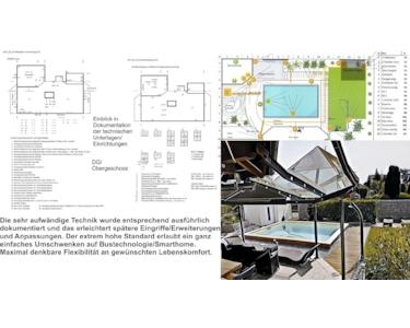 Die Ausstattung ist hoch, technisch auf heutig modernem Niveau, was recht komfortabel ist - der Schritt zum Smarthome ist bereits getan/vorbereitet. Alarmanlage und Video sind teil-installiert und zum Ausbau vorbereitet. Netzwerk und Telefon gibt es in jedem Zimmer, auch in der Garage und im Poolhaus, uvm.
