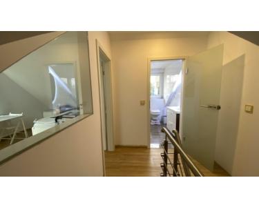 Obergeschoss: Hauptschlafzimmer, Badezimmer mit Badewanne, Kinderzimmer mit Dachschräge.(Hinweis: Aufgrund der baurechtlichen Vorgaben des Bauamts ist das Zimmer im Obergeschoss, das als Kinderzimmer vorgesehen ist, ein Raum mit schrägem Dach. Es handelt sich um eine dreieckige Dachform mit einer maximalen Höhe von ca. 2,05 m. Bitte beachten Sie die Bilder im Anhang.)