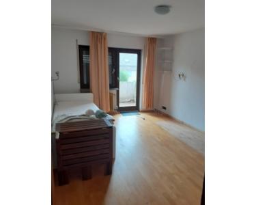 Zu erneuernder Teppichboden im 2. OG. Großes Studio mit 3 großen Fenstern. Duschbad dunkel gefliest und kleines Arbeitszimmer oder Kaffeeküche oder Gästeschlafzimmer oder was auch immer.?