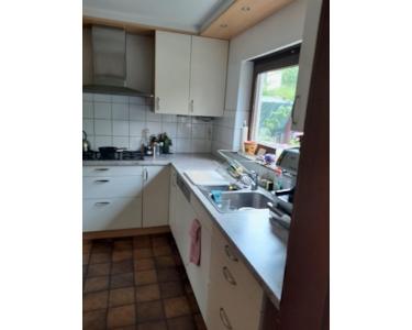 Das Haus hat eine neuwertige Einbauküche mit großem Gaskochfeld. Ein Gäste - WC und einen großen Garderobenbereich am Eingang. Einen wunderschönen Sandstein - Kaminofen im Wohnzimmer. Dunklen Fliesenboden und Fußbodenheizung im EG. Eine separat zu erreichende Einliegerwohnung mit kleiner Küche und Duschbad, die für Au Pair taugt oder vermietet werden kann.