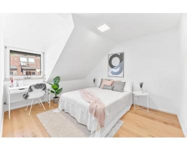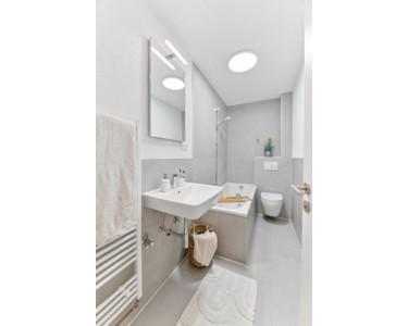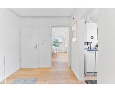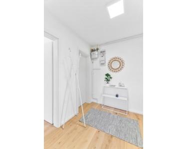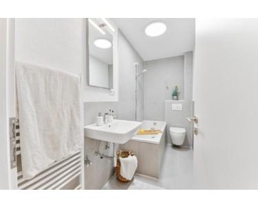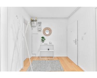 Die Wohnung wurde umfassend renoviert, inklusive neuer Bodenbeläge und eines neuen Badezimmers. Die Küche befindet sich aktuell im Aufbau. Auf den Fotos sind daher lediglich Muster und Visualisierungen zu sehen.