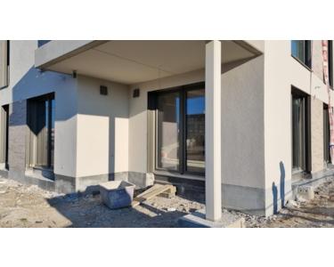 Großzügige Terrasse, hochwertiger Vinylboden, bodentiefe Dusche, sehr hochwertige Einbauküche, elektrische Jalousien, Fußbodenheizung, PKW Stellplatz.