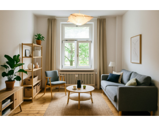Hinweis: die Bilder der Möbilierung sind Beispielhaft und stellen nicht den fertig möbilierten Zustand dar, da noch erst zu ende renoviert werden muss bevor möbiliert wird. Das Zimmer ist größer als auf dem Bild (siehe Grundriss) und wird auf jeden Fall ein Bett oder Schlafcou haben.