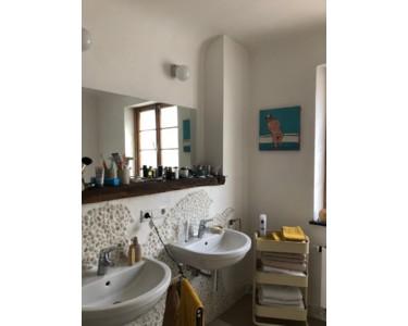 Es gibt ein großes Wannenbad mit zusätzlicher Dusche, ein Gäste- WC und im zweiten Stock sind Wasser und Abwasserleitungen vorhanden, falls man ein weiteres Bad einbauen möchte.