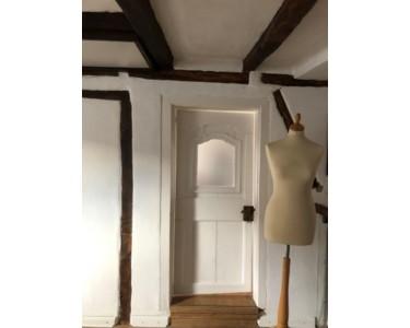 Zur Straße hin wurde eine antike Eichenholztür aufgearbeitet und eingebaut und eine zweite, aus der Gasse in die Küche führende Haustür wurde im Sommer 2025 erneuert.