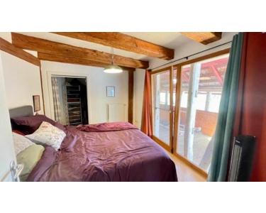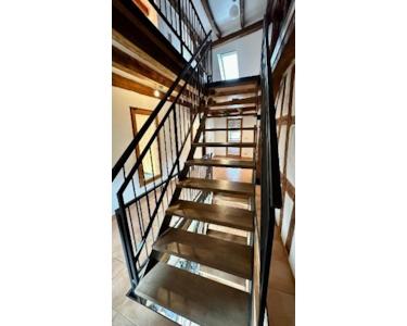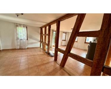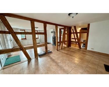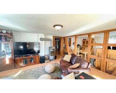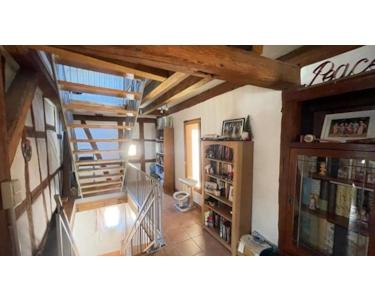 On the 2nd. floor. The living room is separated from the dining room only by massive wooden beams, the well-equipped, modern kitchen and a guest toilet.