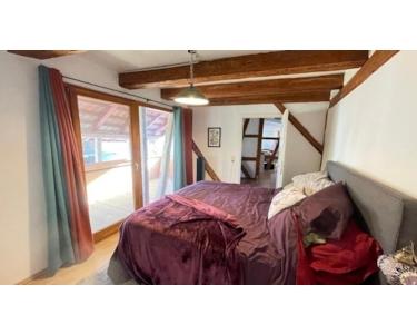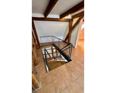 „1834“ Farm & Barn<br/>Das Tor zum Schwarzwald,<br/><br/>Ein Ort zum wohl fühlen Ultra modern im historischen Gebäude von 1834<br/><br/>* Ca. 170 m² Wohnfläche<br/>* Vier Schlafzimmer<br/>* Zwei Bäder und Gäste WC<br/>* offene Garage groß genug für den Van/Truck und zusätzlicher Carport<br/>* zwei herrlich große Balkone mit fantastischen Weitblick in den Schwarzwald und<br/>* eine überdachte Terrasse<br/>* Sichtbalken<br/>* großzügige Aufteilung <br/>* Weinkeller<br/>* offene integrierte Treppen<br/>* Ölzentralheizung mit Wärmepumpe und<br/>* Kaminofen<br/><br/>Aufteilung:<br/><br/>Im ersten OG. Befindet sich das Wohnzimmer nur mit massiven Holzbalken vom Esszimmer getrennt, die gut ausgestattete, moderne Küche und ein Gäste WC.<br/>Vom Wohnzimmer aus gelangen Sie auf den sehr großen Balkon, der ausreichen Platz für einen Esstisch für 6-8 Personen bietet.<br/>Gegnüber im 2. Hausteil, der ehemaligen Scheune gelegen befindet sich das Elternschlafzimmer, mit eigener überdachter Terrasse, einem sep. Ankleidezimmer und dem Ensuite Badezimmer mit Dusche, Waschtisch und WC.<br/><br/>Darüber, im zweiten OG sind 3 schöne Schlafzimmer, 2 davon, teilen sich den oberen, offenen Balkon mit herrlicher Weitsicht über die Wiesen und Felder bis zum Schwarzwald. Daneben das Badezimmer, mit Dusche, Badewanne, doppeltem Waschtisch und WC.<br/>Eine Besonderhheit ist der sehr groß, offene Bereich zwischen den Räumen, welcher ein wunderbares Spielezimmer, ein Entertainment room, oder aber auch Platz für 2 Arbeitsplätze z.B. für Ihre Kinder bietet.<br/>Darüber über eine Leiter zu erreichen 2 Abstellräume unter dem Dach.<br/><br/>Im Erdgeschoss befinden sich neben der großzügigen Garderobe, in der auch leicht ein schönes Büro untergebracht werden kann, die Wirtschaftsräume die Waschküche, darunter der Weinkeller, ein wunderbares Gewölbe aus dem Jahre 1834!<br/><br/>Auch zu erwähnen:<br/>Im Ort finden sich neben dem Schloss, sämtliche Geschäfte des täglichen Bedarfs, wunderbare Restaurants und Cafe´s und in wenigen Schritten sind Sie inmitten der schönsten Natur!<br/><br/>EUR 2450 + EUR 140 Nebenkostenvorauszahlung + Strom, Öl, Abfall und Internet<br/>+ 3 MM Kaution.<br/><br/>Besichtigungen gerne unter Info@immopointeurope.de