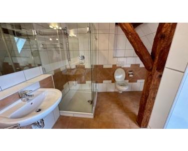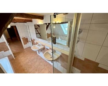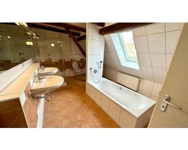 Above that, on the 3rd. floor, are 3 beautiful bedrooms, 2 of which share the upper, open balcony with a wonderful view over the meadows and fields to the Black Forest. Next to it is the bathroom with shower, bathtub, double vanity and toilet.