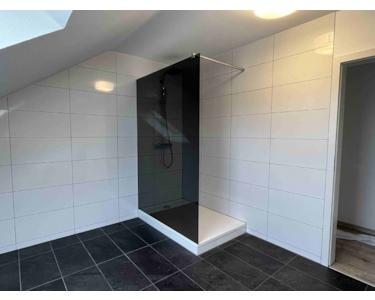 Die Ausstattung ist hell und modern, u.a. schicker Laminatboden in den Wohn-/Schlafräumen sowie in der Küche, das Badezimmer hat anthrazitfarbene Bodenfliesen und weiß geflieste Wände. Das Highlight ist die großzügige, fast ebenerdige Dusche!