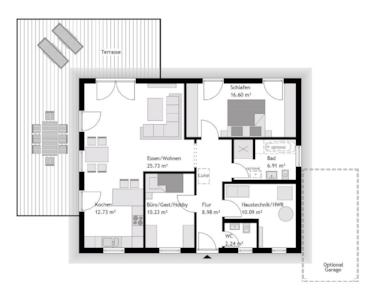 Noch mehr Komfort: Auf Wunsch mit Garage - für Auto, Fahrräder oder Gartenutensilien.
