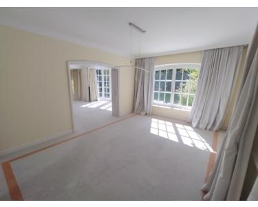 Am Ende einer ruhigen Sackgasse, die ausschließlich von Anwohnern befahren wird, wurde im Jahr 1994 auf einem ca. 1.008 m² großen Grundstück das hier angebotene Einfamilienhaus freistehend erbaut. Es besticht bis heute durch seine durchdachte Wohnkonzeption und die hochwertige Auswahl an Bausubstanz und Materialien. Beim Betreten des Hauses werden Sie von einer großzügigen Wohnhalle mit edlen Marmorböden empfangen, die in den familienfreundlichen Wohnbereich führt. Dieser ist mit einem Kamin und einem direkten Zugang zur sonnigen Südterrasse ausgestattet. Eine Schiebetür trennt das Wohnzimmer vom angrenzenden Esszimmer, das zusammen mit dem Wohnbereich eine Gesamtfläche von ca. 81 m² bietet. Die geräumige Wohnküche (ca. 27m²) mit maßgefertigten weißen Einbauten verfügt über einen Ausgang zur Frühstücksterrasse und ist über eine Vorküche mit zwei Durchreichen verbunden: eine für Getränke ins Wohnzimmer und eine für Speisen von der Küche. Im hinteren Bereich des Erdgeschosses befinden sich die praktische Zugangsschleuse zur beheizten Doppelgarage, ein Hauswirtschaftsraum sowie ein Gäste-WC. Über einen großzügigen Treppenaufgang erreicht man die Empore und das Obergeschoss. Der private Schlafbereich umfasst ein Hauptschlafzimmer mit Zugang zum Süd-Balkon sowie ein Ankleidezimmer mit großen Schränken, das direkten Zugang zum luxuriösen Ensuite-Bad mit Marmorböden bietet. Zwei weitere helle Zimmer und ein separates Duschbad befinden sich im rückwärtigen Flügel des Obergeschosses. Das Dachgeschoss bietet zusätzlichen Raum mit Ausbaupotenzial. Zu den hochwertigen Ausstattungsmerkmalen des Hauses gehören maßgefertigte Holzeinbauten, ein Wäscheabwurf, ein Lastenaufzug, eine zentrale Staubsaugeranlage sowie eine Fußbodenheizung. Eine integrierte Musikanlage ermöglicht individuelle Musiksteuerung in Schlafzimmer, Bad, Küche und Esszimmer. Die Fenster sind mit einbruchhemmendem Sicherheitsglas ausgestattet, ergänzt durch elektrische Markisen und Vorhänge sowie eine stilvolle Rundum-Beleuchtung. Das voll unterkellerte Wohnhaus bietet eine große Waschküche, einen Weinkeller und einen ausgebauten Fitnessraum. Ergänzt wird der Nutzbereich durch ein weiteres Duschbad sowie ein separates WC. Drei der vier direkten Nachbarhäuser sind moderne Neubauten aus den letzten zehn Jahren, was die familienfreundliche Lage zusätzlich aufwertet. Dieses Anwesen vereint Großzügigkeit, Funktionalität und höchste Bauqualität und ist ideal für anspruchsvolle Mieter, die ein stilvolles Zuhause suchen.