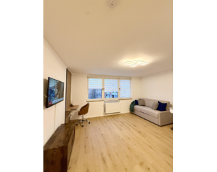 Der helle Wohn- und Schlafbereich ist geschmackvoll möbliert und bietet dank eines hochwertigen Schlafsofas mit echter Matratze höchsten Schlafkomfort – auch für den dauerhaften Gebrauch geeignet. Ein separater Essbereich sowie ein praktischer Arbeitsplatz machen die Wohnung ideal für Berufstätige, Pendler oder Projektmitarbeiter.