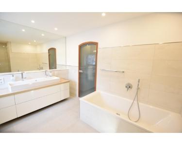 Die Wohnung verfügt über ein hochwertig ausgestattetes Badezimmer, das luxeriös saniert wurde: