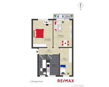 Die 3-Raum-Wohnung im 4. Obergeschoss ist wie folgt aufgeteilt: