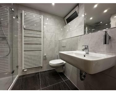 Das Badezimmer verfügt über ein Fenster und zusätzlich über eine separate Lüftung. Auch die Sanitärinstallation wurde vollständig modernisiert. Hierzu gehörte die Erneuerung aller Heizkörper in der Wohnung sowie der Austausch von WC, Waschbecken und Dusche inklusive sämtlicher Armaturen. Die Sanitärausstattung präsentiert sich modern, hochwertig und funktional.