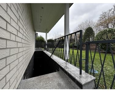 Sie befindet sich in einem wunderschönen Dreiparteienhaus in ruhiger und gepflegter Einfamilienhausbebauung. Es besteht ein exklusiver Zugang zur Wohnung: Rechts entlang der Einfahrt führt ein separater Weg über den Außenbereich, der über Eck verläuft und über eine Treppe, vorbei am Garten, hinunter ins Souterrain bis zum Wohnungseingang führt. Der zugehörige Außenbereich kann beispielsweise für eine Sitzgarnitur mit Tisch und Stühlen genutzt werden und bietet zusätzlichen privaten Freiraum.